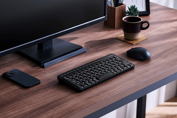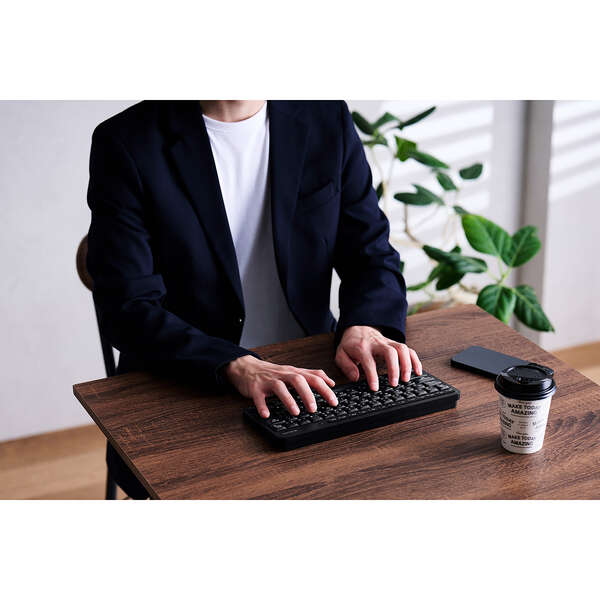 持ち運びに便利な静音ミニサイズキーボードです。 外出先の音が気になる場所でも、周りを気にせず安心して作業ができます。