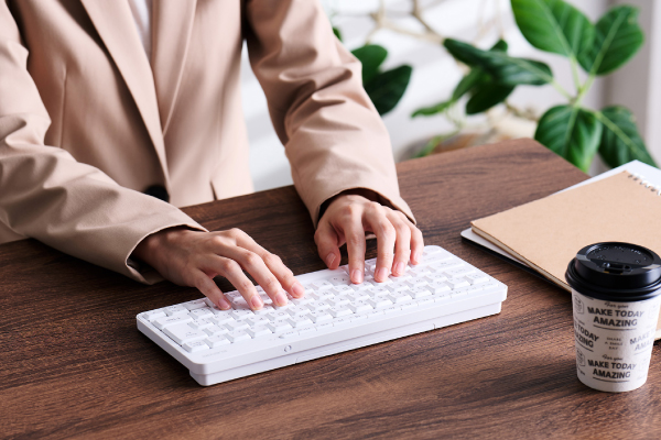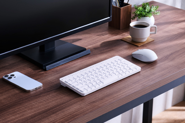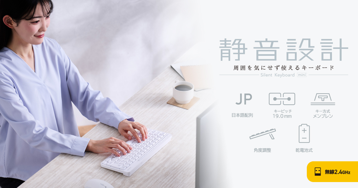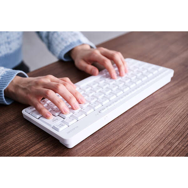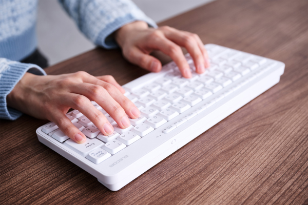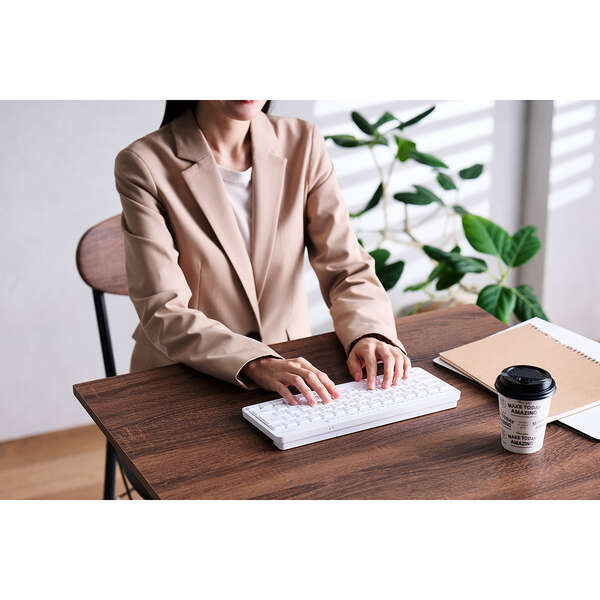 持ち運びに便利な静音ミニサイズキーボードです。 外出先の音が気になる場所でも、周りを気にせず安心して作業ができます。