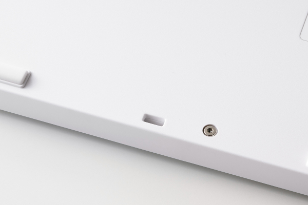 誤って水などの液体をキーボード上にこぼしても、本体背面の水抜き穴からすばやく排出できる排水機構を採用しています。