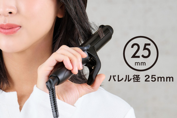 しっかりしたカールができる25mm径。ショートヘア~ボブの方におすすめです。前髪や顔周り、おくれ毛のセットにも向いています。