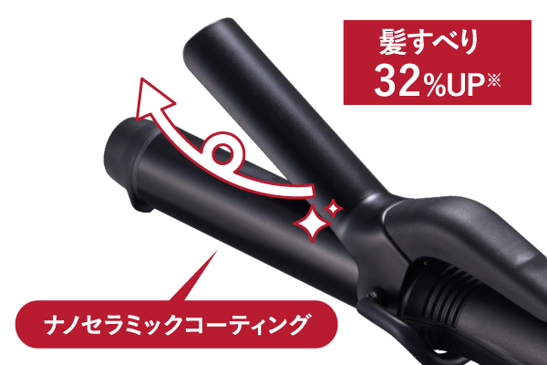 すべりやすさ32%UP!粒子が細かい「ナノセラミック」を配合したコーティングで、摩擦ダメージに配慮した、ひっかかりのないスムーズな髪すべりを実現します。