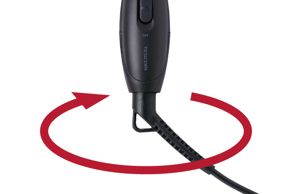 電源コードの根元部分が360度回転するので、ねじれにくく使いやすいです。