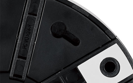 本体底面にも仮固定用の穴を装備し、ネジ頭などに引っ掛けることで、壁などに設置が可能です。