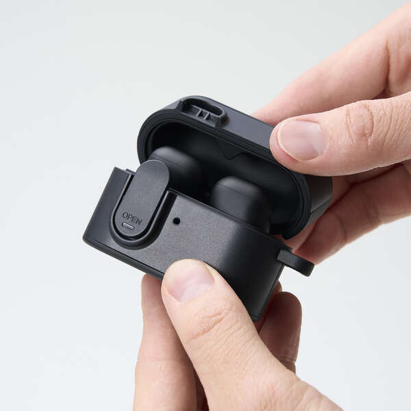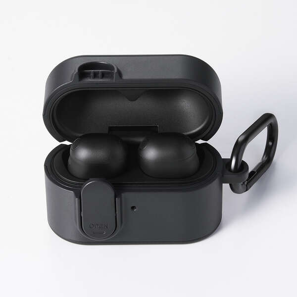 落下時の飛び出しを防ぐロック機能と、独自設計のエアークッションで守る、軽く、衝撃に強いソニー WF-1000XM6用TOUGH SLIM Lockケースです。