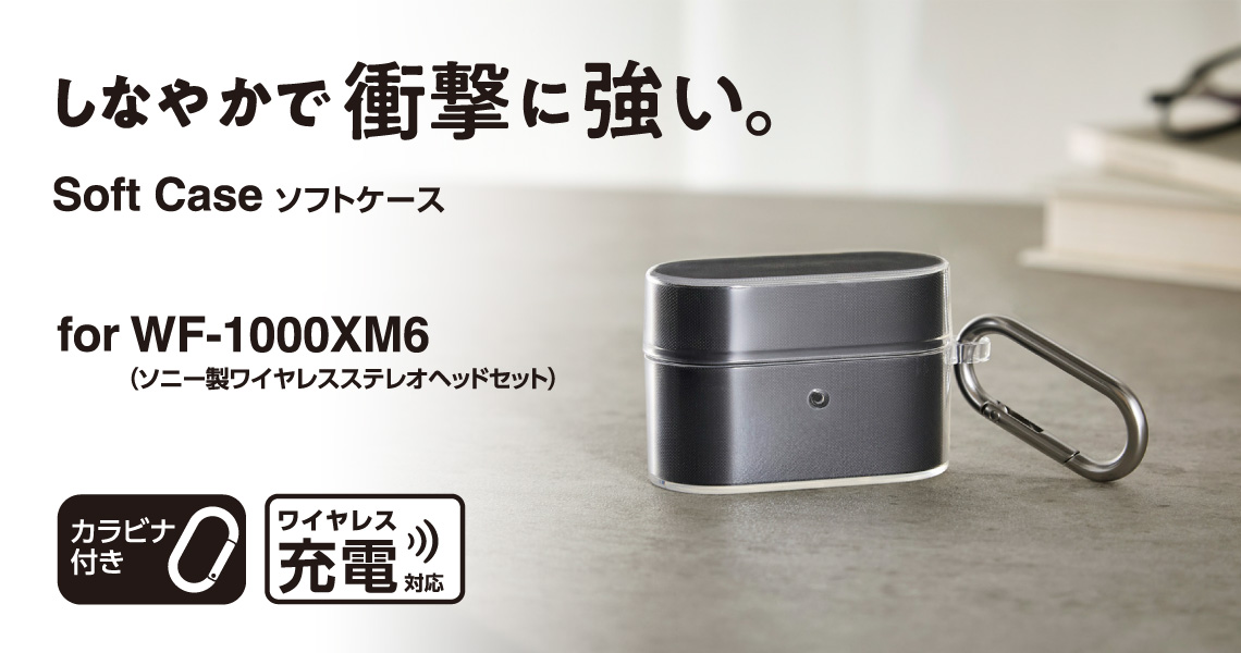 強じんな耐久性としなやかな弾力性をあわせ持つTPU(熱可塑性ポリウレタン)素材を採用し、本体デザインを損なわない透明感で美しさを際立たせるソニー WF-1000XM6用ソフトケースです。