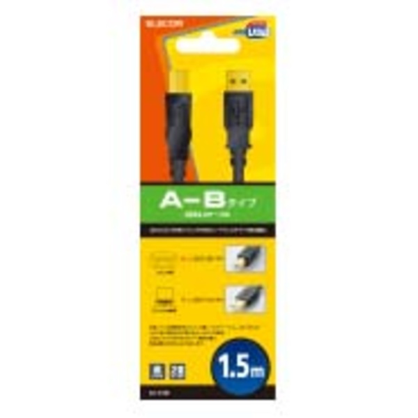 パソコンに、USB(Bタイプ)のインターフェイスを持つプリンタや外付けハードディスクドライブなどの周辺機器を接続できる、A-BタイプのUSB2.0ケーブル。