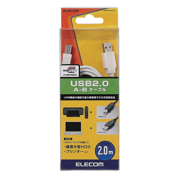 パソコンなどとプリンタやHDD等を接続できるUSB[A]-USB[B] タイプ のUSB2.0ケーブル
