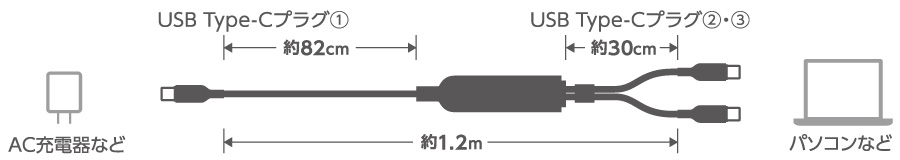 USB Type-Cプラグ②と③の間での充電および、データ転送には対応していません。