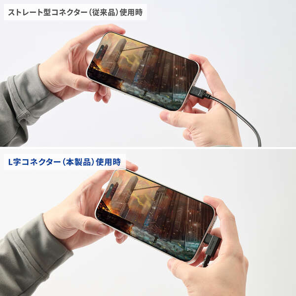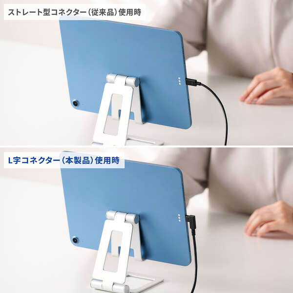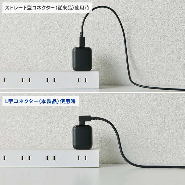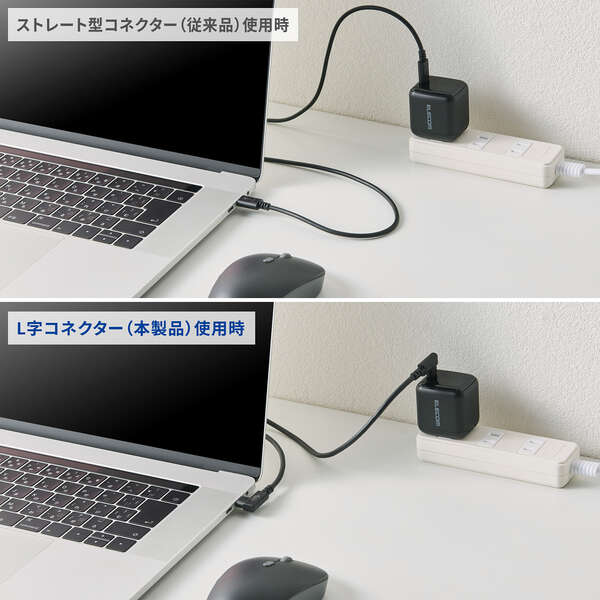 ケーブルの両端にL字コネクターを採用し、飛び出しが少ないすっきりした配線が可能なUSB Type-Cケーブルです。