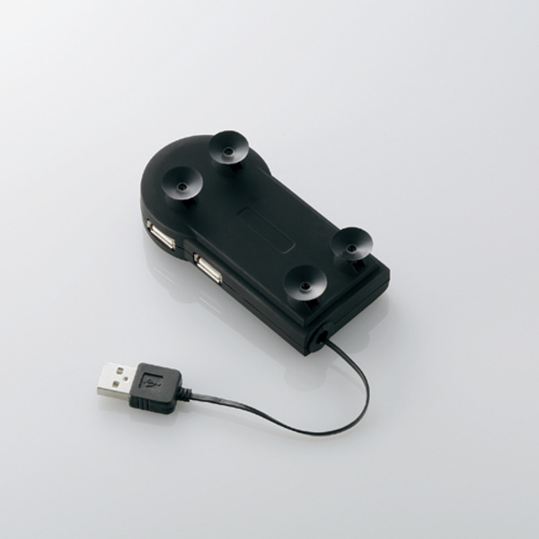 吸盤でピタッと固定!接続した機器の抜き挿しが簡単に行える4ポートUSBハブ。スッキリ収納!未使用時はケーブルが本体内に巻き取れます。セルフパワー、バスパワー両対応モデル。