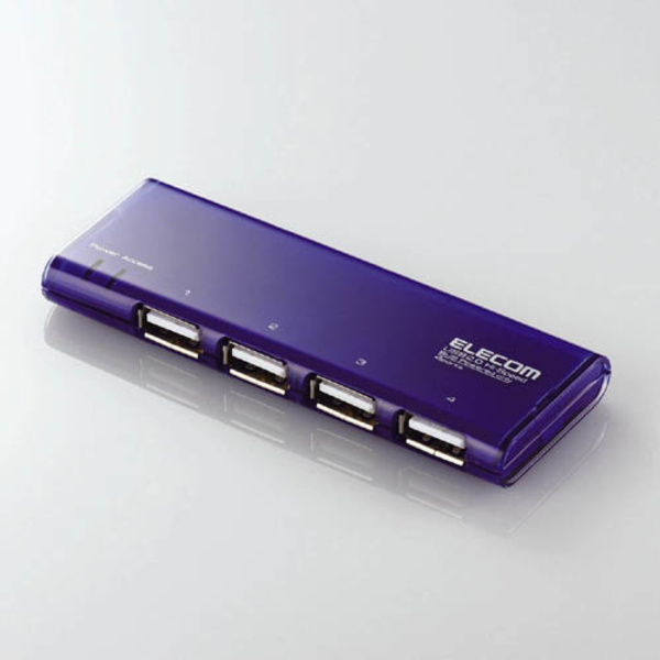 サイドポート仕様のコンパクトなUSB2.0ハブ。バスパワー専用。