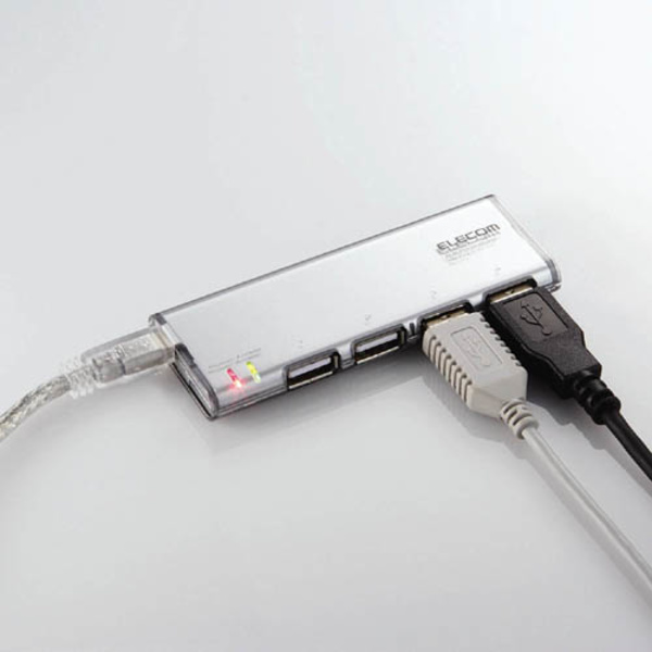サイドポート仕様のコンパクトなUSB2.0ハブ。バスパワー専用。