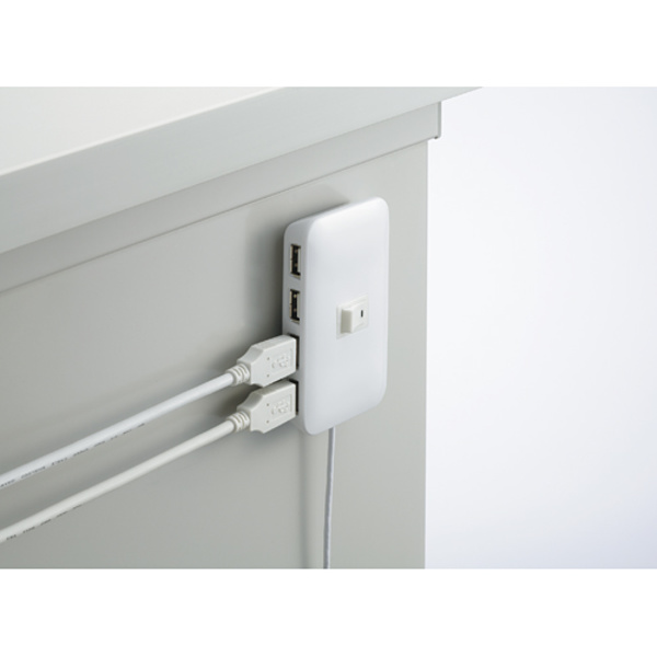 強力マグネットでピタッと固定!スチール製のデスクなどに固定できる4ポートUSBハブ"これハブ プラス。(スイッチ・マグネット付)"。
