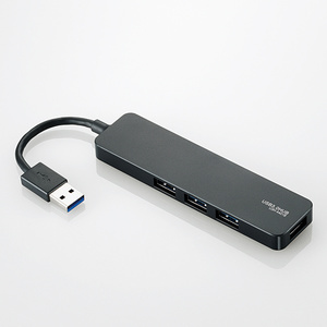 USB2.0の10倍の転送速度、5Gbps(理論値)を実現するUSB3.0に対応!コンパクトなスリムタイプの4ポートUSBハブ。