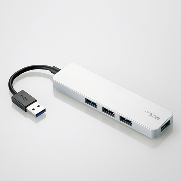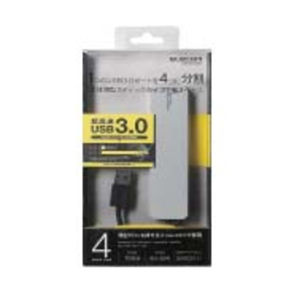 USB2.0の10倍の転送速度、5Gbps(理論値)を実現するUSB3.0に対応!コンパクトなスリムタイプの4ポートUSBハブ。