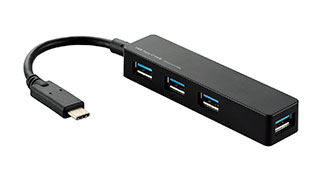 セルフパワー並の電力供給が可能。USB最新規格であるUSB Type-Cコネクタを搭載し、USB Aコネクタを搭載したUSB3.0対応機器を合計4台接続できるUSBハブです。