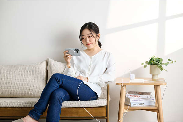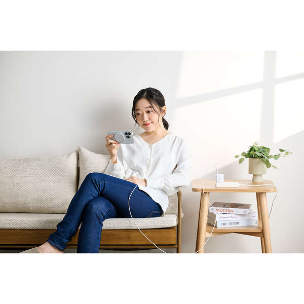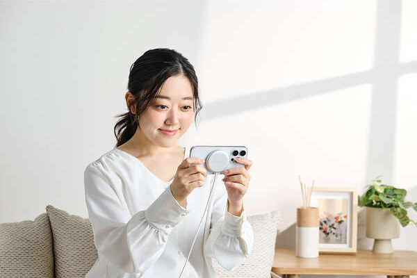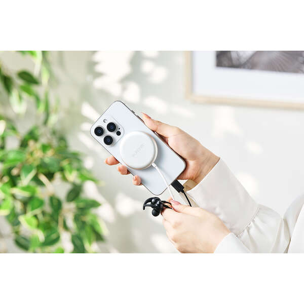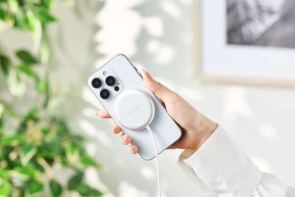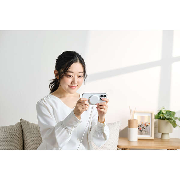 マグネットでスマートフォンの背面にぴったりくっつくため、スマホ操作をしながらの充電も快適です。