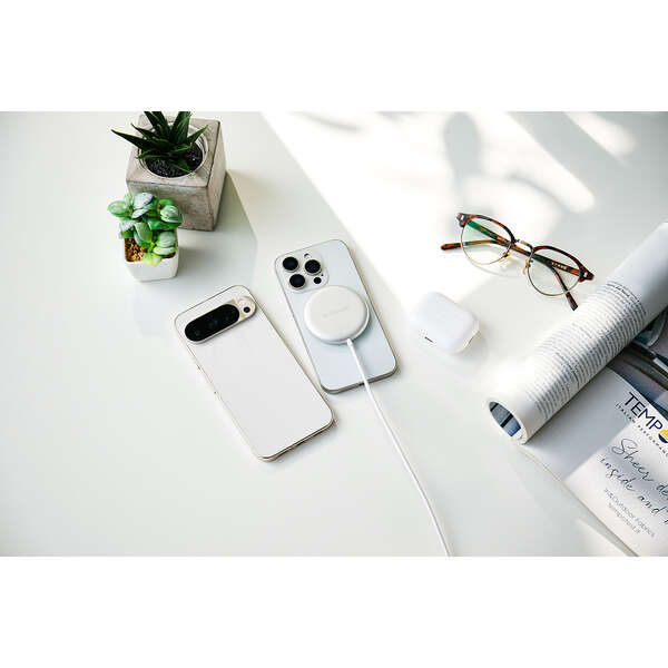 最大25W出力で、ワイヤレス充電がもっと速くなる。Qi2 25W対応のスマートフォンを高速充電できる、マグネット式ワイヤレス充電器です。スマートフォンの背面にぴったりくっつき、スマホ操作をしながらの充電も快適です。