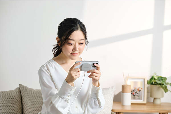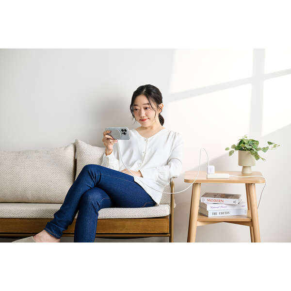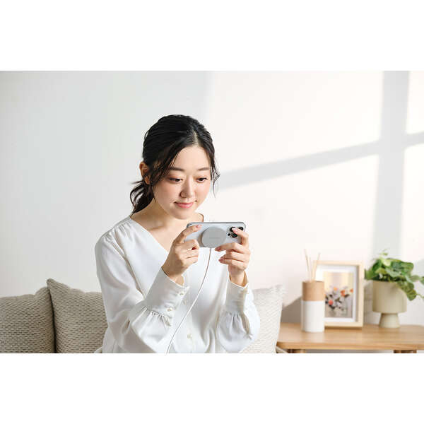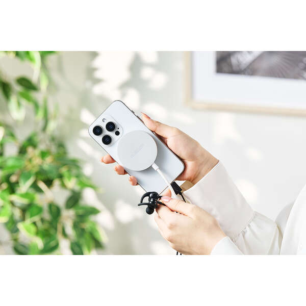 マグネットでスマートフォンの背面にぴったりくっつくため、スマホ操作をしながらの充電も快適です。