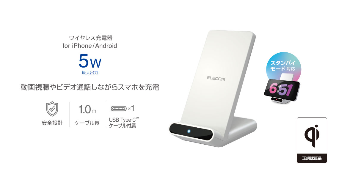 WPC(ワイヤレスパワーコンソーシアム)が策定したワイヤレス給電の国際標準規格「Qi(チー)」に準拠した正規認証品です。