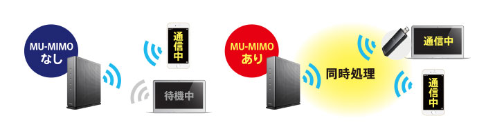 他の端末と同時にデータを受信・処理することができるMU-MIMO機能を搭載しています。