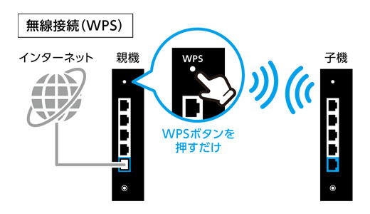 EasyMesh対応機器同士を、有線またはWPSで接続することで、設定が自動的に完了します。