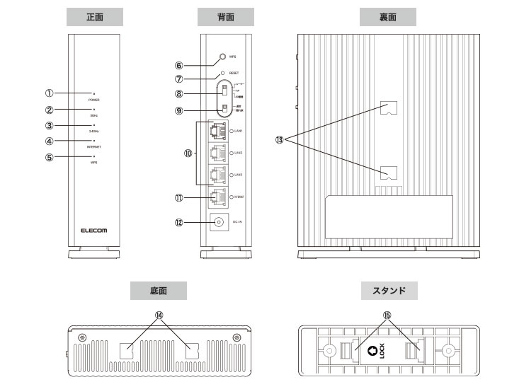 ルーター/AP(アクセスポイント)/中継器の基本動作モードに加え、使用する5GHzの周波数帯をスイッチで切り替えることが可能な「通常」「離れ家モード」を搭載。使用環境に合わせてスイッチで動作モードを切り替えることが可能です。