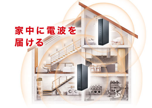 電波の届きにくい場所でも、対応機器と連携することで、家中のWi-Fi通信エリアを効果的に拡大することができます。 高速なローミングのため、お部屋を移動して接続先が切り替わっても、再接続がスムーズなため快適な通信を維持することができます。
