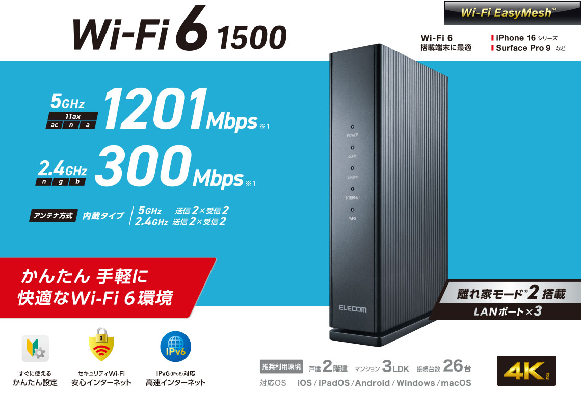 より強固なセキュリティー規格「WPA3 Personal」に対応しています。