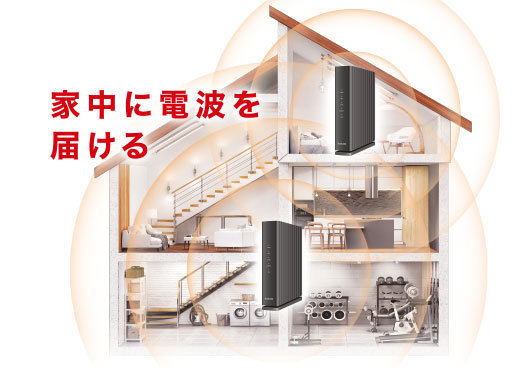 電波の届きにくい場所でも、対応機器と連携することで、家中のWi-Fi通信エリアを効果的に拡大することができます。 高速なローミングのため、お部屋を移動して接続先が切り替わっても、再接続がスムーズなため快適な通信を維持することができます。