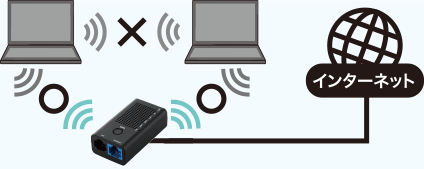 有線LANによるインターネットサービスを提供しているホテルに持ち込み、各部屋に設置されている有線LAN端子に接続するだけで、手軽にWi-Fi(無線LAN)通信によるインターネットが使用可能となります。