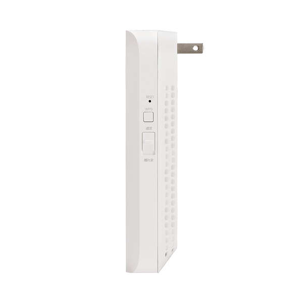 「電波が届かない」を解決するWi-Fi 6対応中継器。高速かつ家中どこでも安定した通信を実現する、AX1500モデル。「離れ家モード2」を搭載し、母屋と離れ家などの建物間でも接続が可能です。壁面コンセントに直接挿し込めるスリムな設計で、省スペースですっきりと設置できます。
