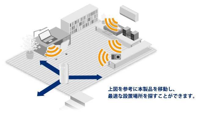 機器を狙い撃ちし、離れても電波を届けることができます。