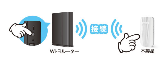 Wi-Fiルーター(親機)と本製品のWPSボタンを押すだけで接続ができます。