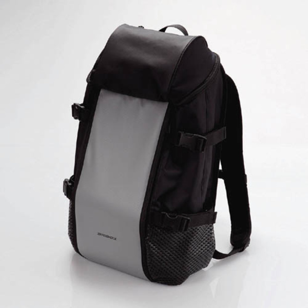 ZEROSHOCKシリーズのバックパックです。PC収容部分に低反発発泡ポリウレタンを使用したバックパックです。低反発ポリウレタンの衝撃吸収性能によって外部からの衝撃からしっかり中身を保護します。
