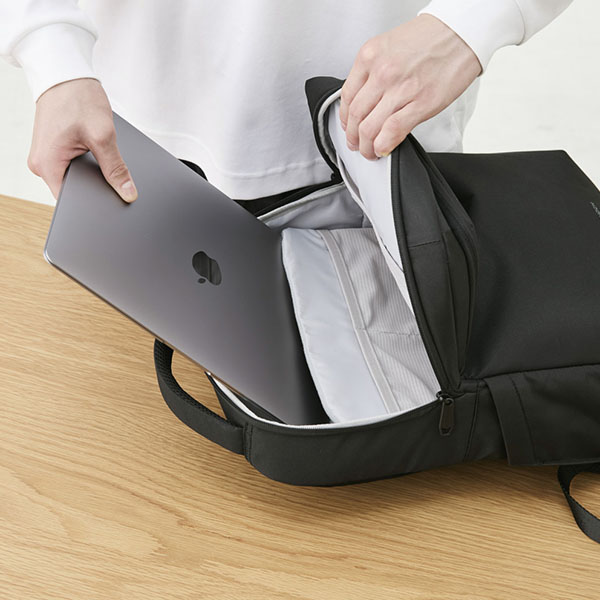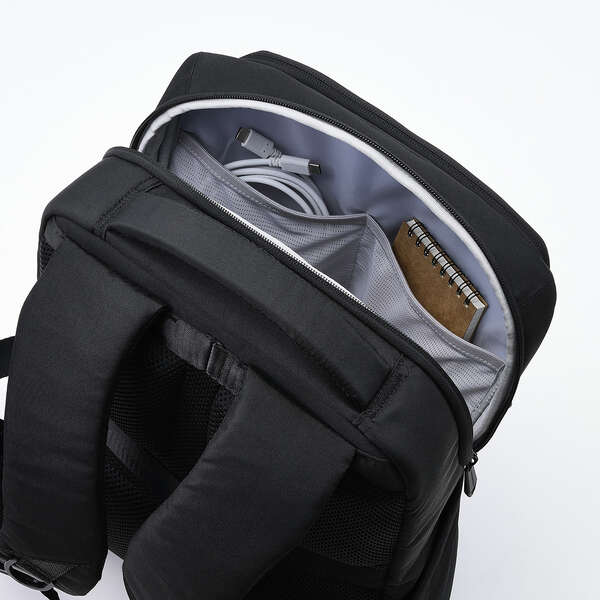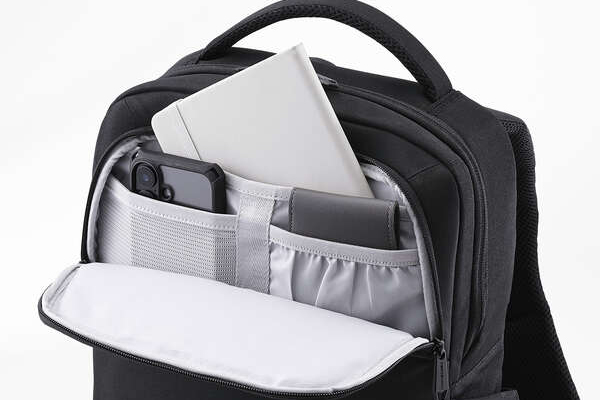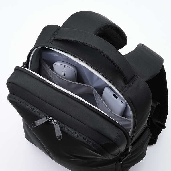 メイン気室には、マウスや充電器などをすっきり収納できる小分けポケットを配置。アイテムごとに分けて収納できるので、バッグの中が散らかりにくく整理しやすいです。