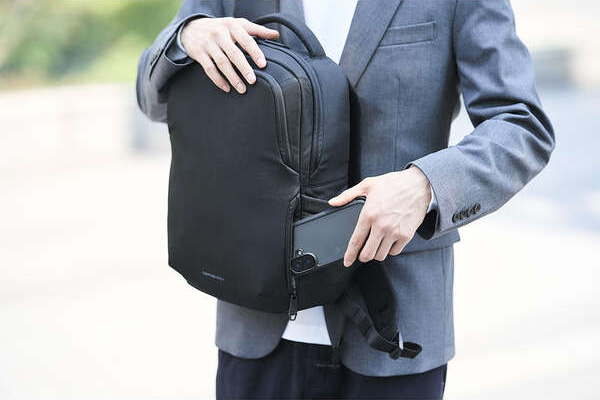 パスケースなど、よく使う小物の収納に便利なクイックアクセスポケット付き。移動中でもサッと取り出せます。