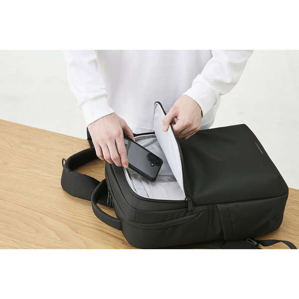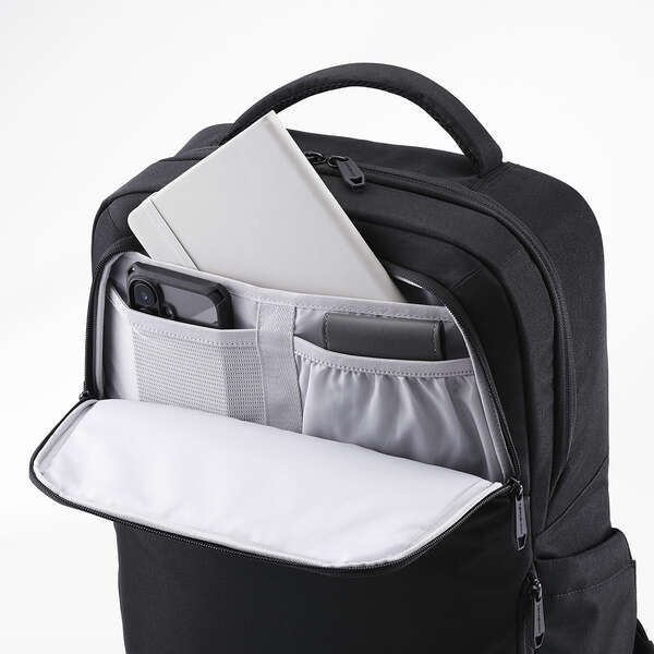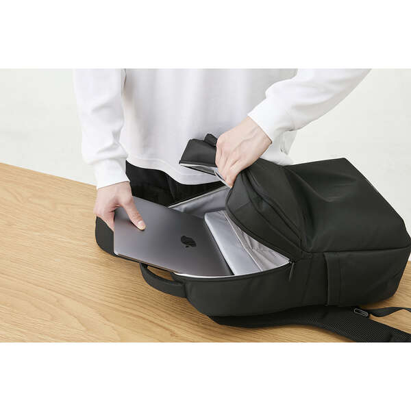 低反発ウェーブカットウレタンフォームがしっかりと衝撃を吸収!大切なノートパソコンを衝撃から守る"ZEROSHOCK"バックパックです。パスケースなど、よく使う小物の収納に便利なクイックアクセスポケット付き。移動中でもサッと取り出せます。