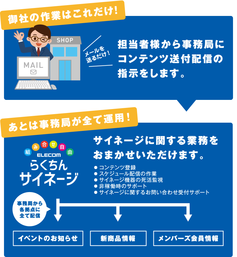 お客様の作業はコンテンツの送付と配信スケジュールの指示だけ!