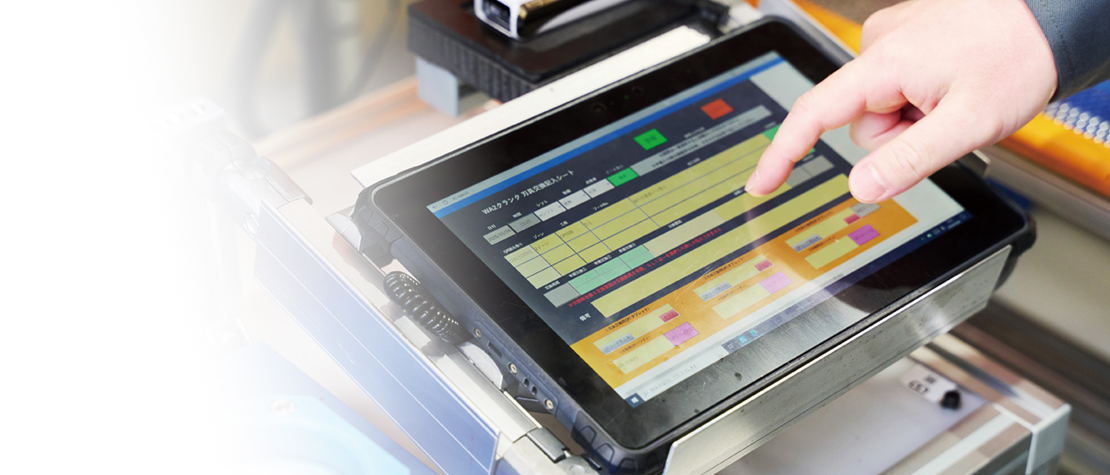 実際の業務では、その操作性やカメラ性能も大きな効果を発揮している。たとえば刃具交換では、刃具ごとに番号を割り振り、工程や情報などをQRコード化。作業者は刃具の交換後、チェックステーション付近に掲示されたQRコードをZEROSHOCKタブレットで読み取ることで、対象設備や交換対象の情報を呼び出し、そのまま記録できる。豊坂氏は、「どこの工程でどの刃具を替えたかという情報が一気に出る。交換してOKなら登録するだけなので、作業性が上がった」と語る。