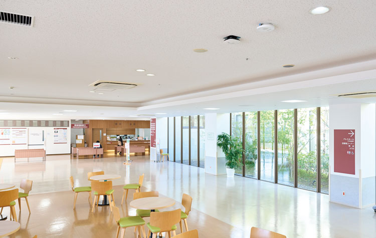 のどかな田園風景の中、木々に囲まれた広大な敷地にあるのが明和病院様である。県内最大級の回復期リハビリテーションに特化した病院で、敷地内には特別養護老人ホーム「明和苑」と、重症心身障害児(者)施設「なでしこ」を併設し、地域の医療と介護・福祉を一体で支えている。