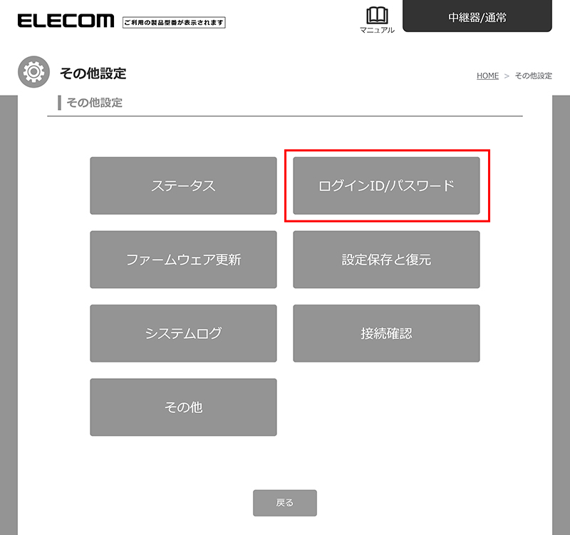 「その他設定」画面が表示されますので、「ログインID/パスワード」を選択します。
