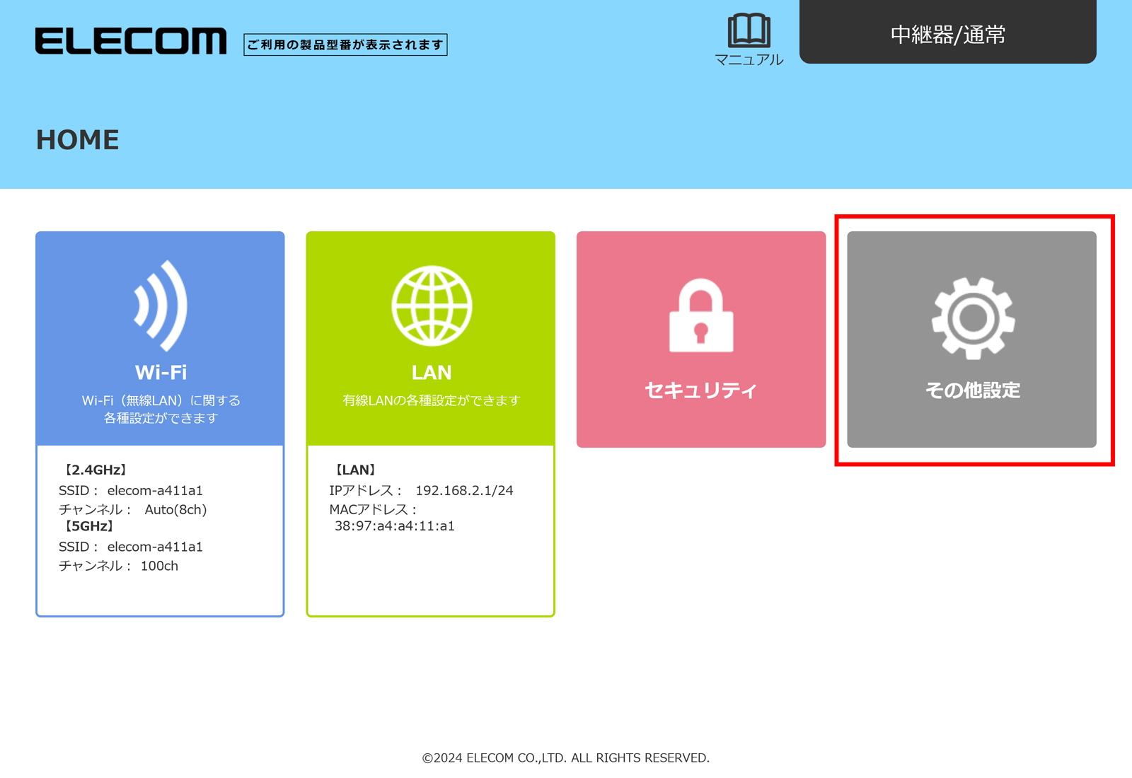 エレコムWebサイトのメニューから