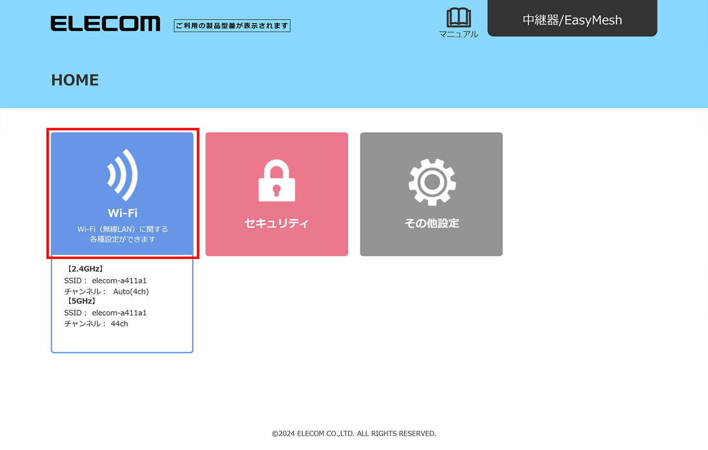 ①設定画面のHOME画面から「Wi-Fi」−「EasyMesh」を選択します。