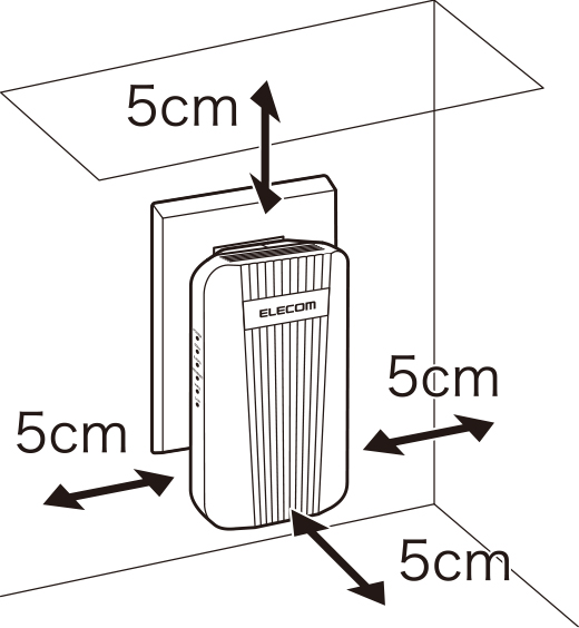 ● 設置面を除き、本製品の前5cm、上5cm、左右5cm 以内に、物を置かないでください。