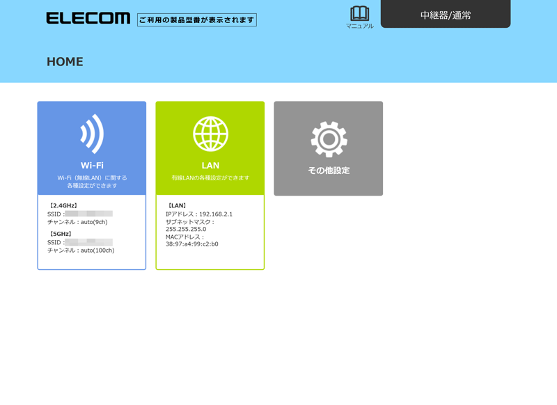 モード変更後に設定ユーティリティーにアクセスしたい場合は、本製品にお使いのパソコンだけを接続した状態で電源をONにし、お使いのパソコンのIPアドレスを「192.168.2.xxx」(xxxは任意の数字)に固定してアクセスしてください。※AP(アクセスポイント)モードで利用中の本製品に別のルーターを接続すると、IPアドレスが変わる場合があります。本製品からルーターを外して電源を入れ直すと、IPアドレスは「192.168.2.1」に戻ります。