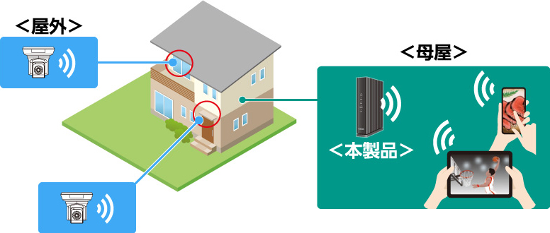 上流に別のルーターやホームゲートウェイなどがあり、かつ玄関先やベランダなど敷地内の屋外に設置されたデバイスも接続する場合はこちらでご使用ください。 詳細 |