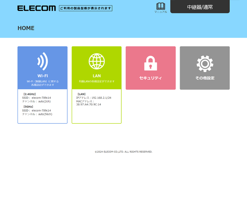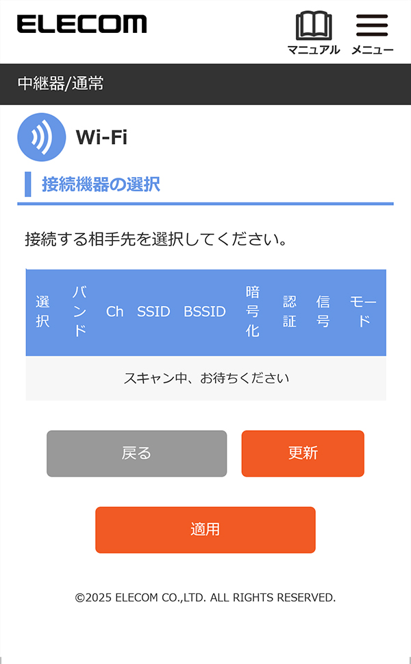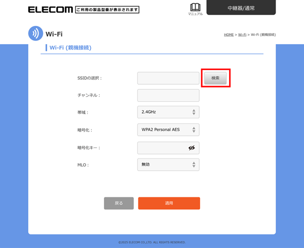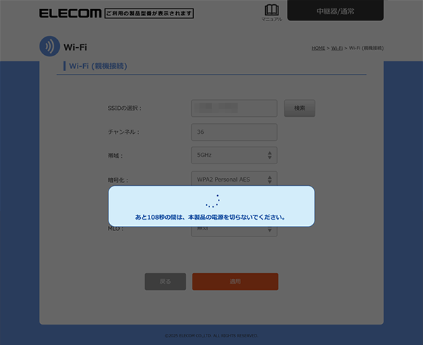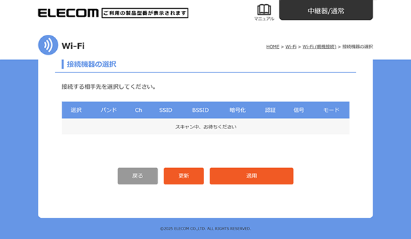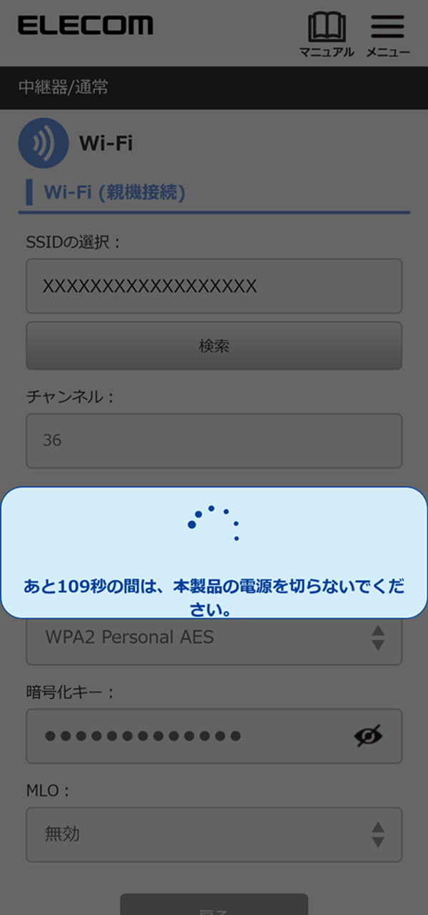 本製品を中継器としてインターネットに接続する > 手動でお使いのルーターに中継器(通常)モードで接続する