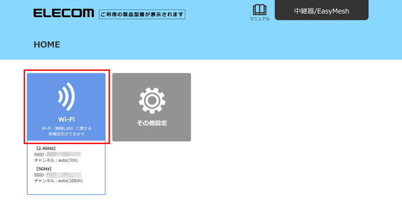 ※初期設定の時点では2.4GHzと5GHzのSSID(Wi-Fi名)は共通の値になります。