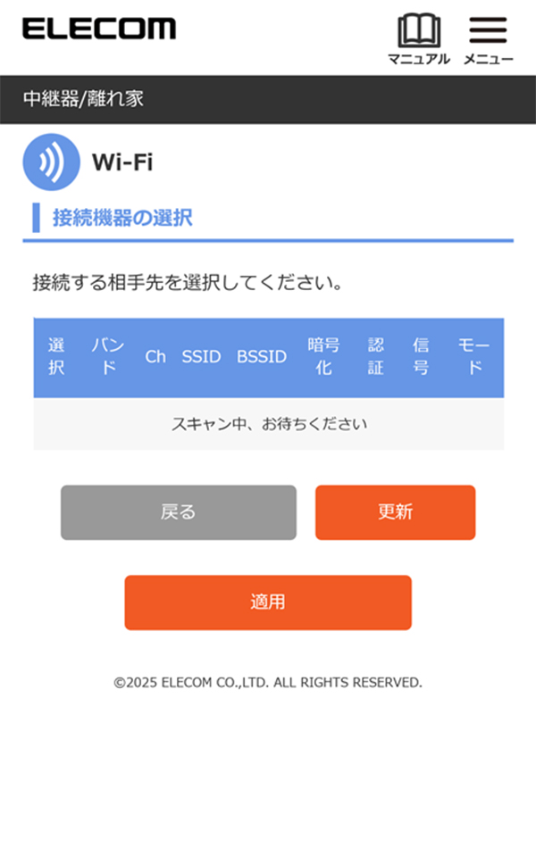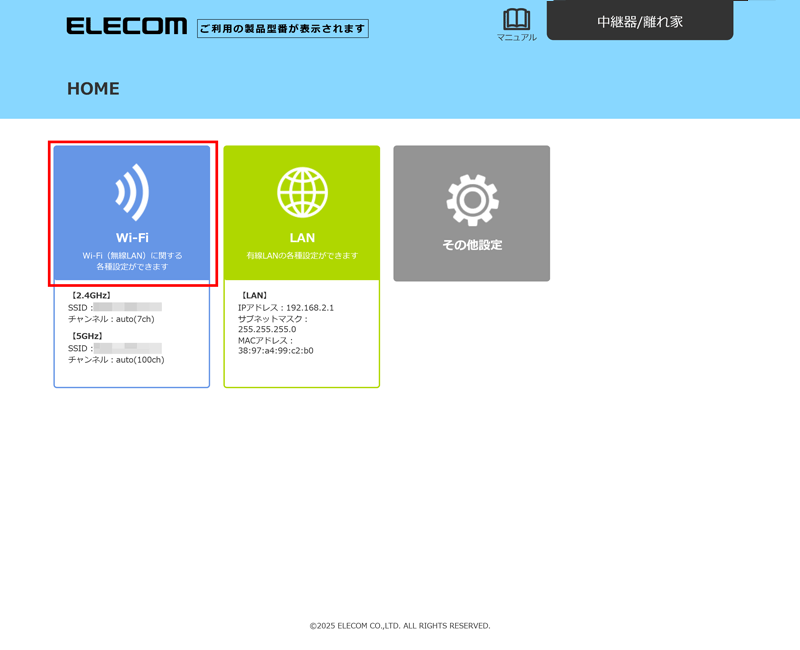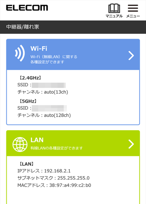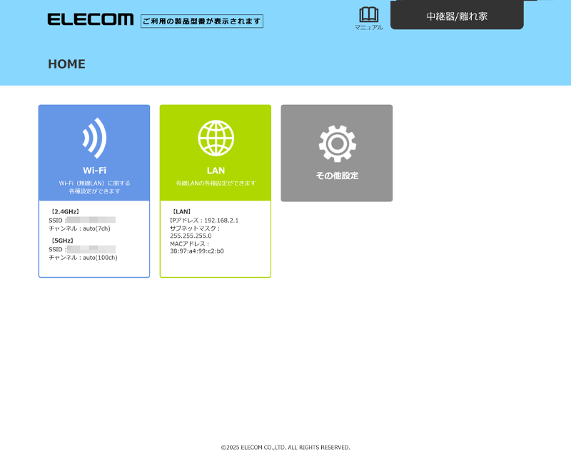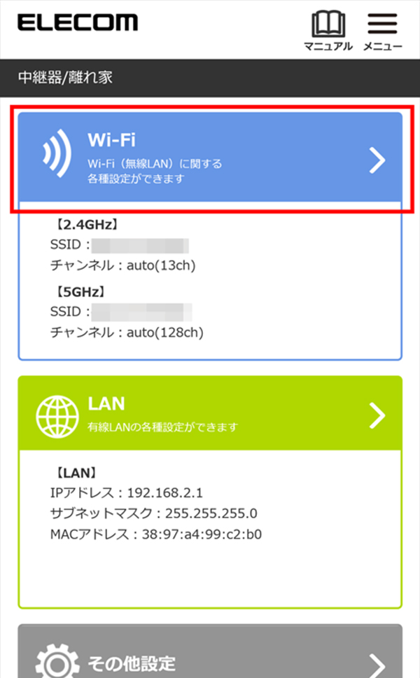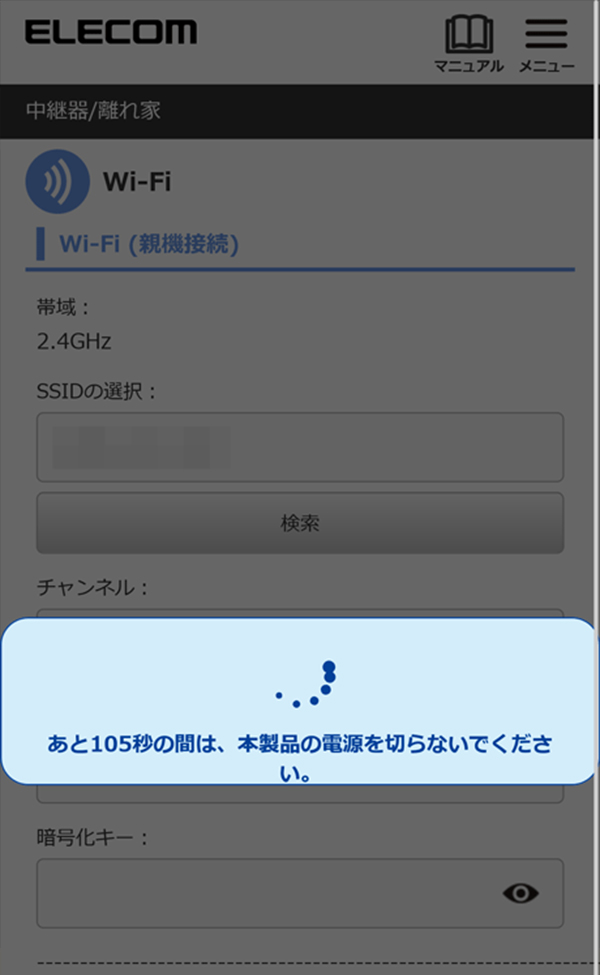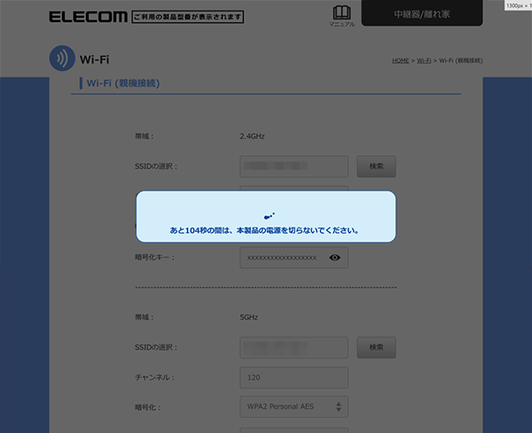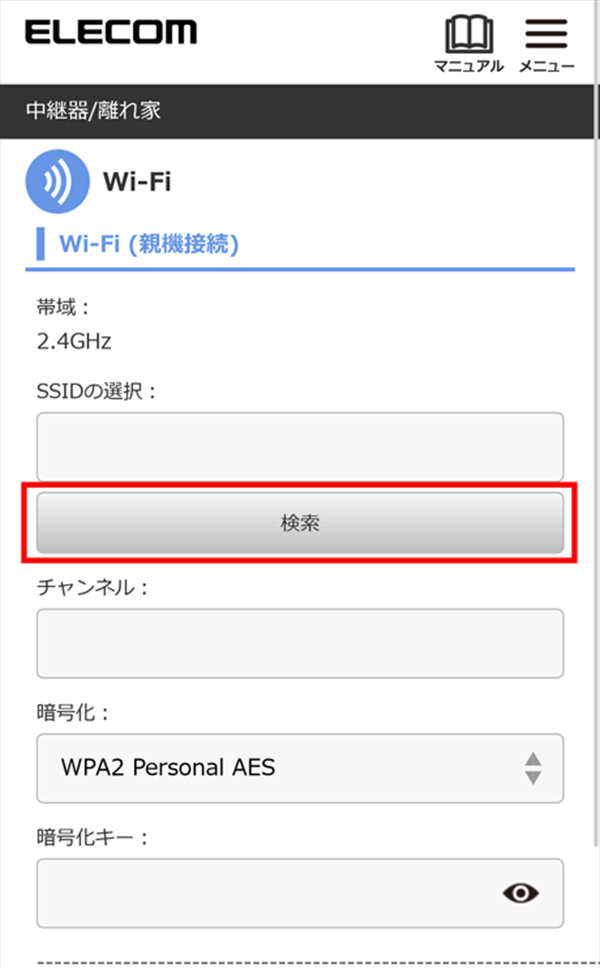 本製品を中継器としてインターネットに接続する > 手動でお使いのルーターに中継器(離れ家)モードで接続する